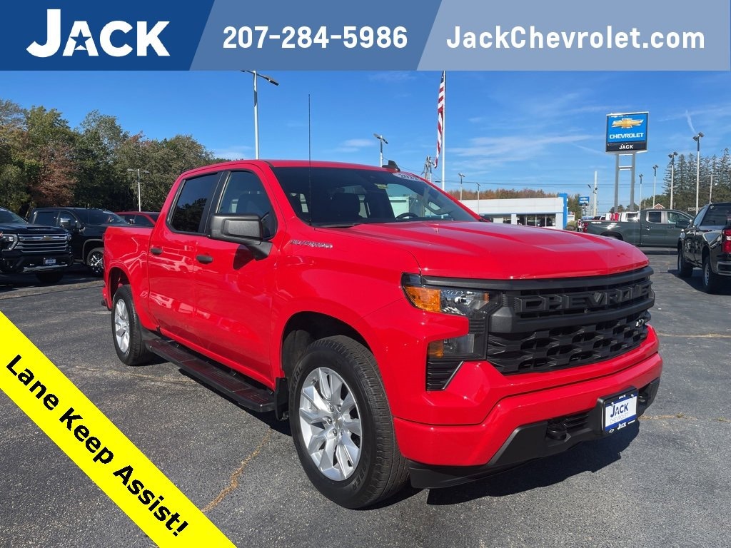 8-Speed Automatic, Black Cloth, 10-Way Power Driver Seat w/Lumbar, 120-Volt Instrument Panel Power Outlet, 3.5 Monochromatic Display Driver Info Center, 4-Wheel Disc Brakes, 6-Speaker Audio System, 6 Rectangular Black Tubular Assist Steps (LPO), ABS brakes, Air Conditioning, AM/FM radio: SiriusXM, Apple CarPlay/Android Auto, Auto High-beam Headlights, Automatic Emergency Braking, Bluetooth® For Phone, Brake assist, Chevrolet Connected Access Capable, Cloth Seat Trim, Color-Keyed Carpeting Floor Covering, Compass, Custom Convenience Package, Custom Value Package, Deep-Tinted Glass, Delay-off headlights, Driver door bin, Dual front impact airbags, Dual front side impact airbags, Dual Rear USB Ports (Charge Only), Electric Rear-Window Defogger, Electrical Steering Column Lock, Electronic Cruise Control, Electronic Stability Control, EZ Lift Power Lock & Release Tailgate, Following Distance Indicator, Forward Collision Alert, Front anti-roll bar, Front Black Bowtie Emblem (LPO), Front Frame-Mounted Black Recovery Hooks, Front Pedestrian Braking, Front reading lights, Front Rubberized Vinyl Floor Mats, Front wheel independent suspension, Fully automatic headlights, HD Rear Vision Camera, Heated door mirrors, High Capacity Suspension Package, Hitch Guidance, IntelliBeam Automatic High Beam On/Off, Lane Keep Assist w/Lane Departure Warning, LED Cargo Area Lighting, Low tire pressure warning, Manual Tilt Wheel Steering Column, Not Equipped w/Steering Column Lock, Occupant sensing airbag, OnStar & Chevrolet Connected Services Capable, Overhead airbag, Panic alarm, Passenger door bin, Power door mirrors, Power Front Windows w/Driver Express Up/Down, Power Front Windows w/Passenger Express Down, Power Rear Windows w/Express Down, Preferred Equipment Group 1CX, Premium audio system: Chevrolet Infotainment 3, Rear 60/40 Folding Bench Seat (Folds Up), Rear Rubberized-Vinyl Floor Mats, Rear step bumper, Rear window defroster, Remote Keyless Entry, Remote Vehicle Starter System, Security system, SiriusXM Radio, Speed control, Speed-sensing steering, Standard Tailgate, Theft Deterrent System (Unauthorized Entry), Traction control, Trailering Package, Wi-Fi Hot Spot Capable, Wireless Phone Projection.