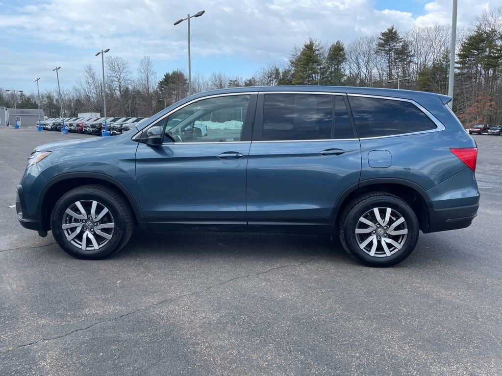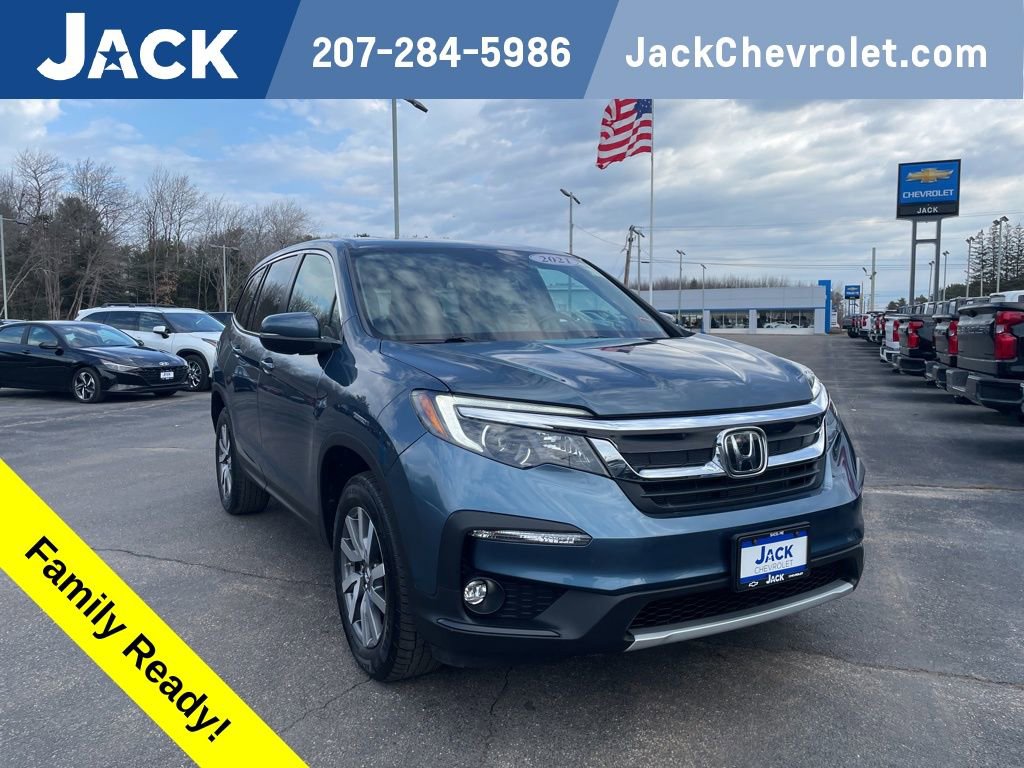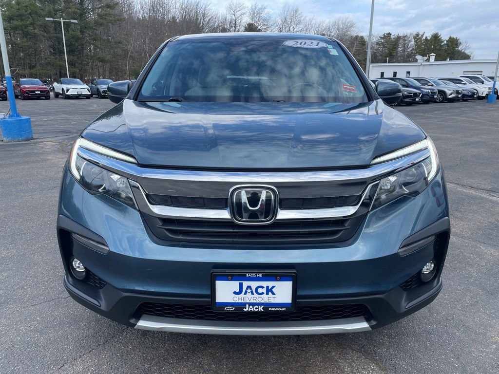 Discover the perfect family-friendly SUV with the 2021 Honda Pilot EX-L. This exceptional vehicle combines versatility, comfort, and advanced technology to elevate your driving experience. With its 3.5L V6 engine and 9-speed automatic transmission, the 2021 Honda Pilot EX-L delivers impressive power and efficiency, achieving an EPA-estimated 19 MPG in the city and 26 MPG on the highway. The sleek blue exterior and spacious, well-appointed interior make this SUV a true standout. The Pilot's advanced safety features, including the Collision Mitigation Braking System, Lane Keeping Assist, and Blind Spot Monitoring, provide you and your family with the utmost protection. Enjoy the convenience of a power liftgate, remote keyless entry, and a premium audio system with SiriusXM radio. Whether you're transporting the kids to school, embarking on a road trip, or simply running errands, the 2021 Honda Pilot EX-L is the perfect companion. Its versatile seating and cargo space, combined with the latest technology and safety innovations, make it a must-see for any discerning SUV buyer. Cabin Features include 7 Speakers, AM/FM radio: SiriusXM, Radio: 215-Watt Audio System, Air Conditioning, Automatic temperature control, Front dual zone A/C, Rear air conditioning, Rear window defroster, Memory seat, Remote keyless entry, Steering wheel mounted audio controls, A/V remote, and CabinControl. Safety & Convenience: Four wheel independent suspension, Speed-sensing steering, Traction control, 4-Wheel Disc Brakes, ABS brakes, Dual front impact airbags, Dual front side impact airbags, Emergency communication system: HondaLink Assist, Front anti-roll bar, Low tire pressure warning, Occupant sensing airbag, Overhead airbag, Rear anti-roll bar, Power moonroof, Power Liftgate, Blind Spot Information (BSI) System warning, Brake assist, Electronic Stability Control, Forward collision: Collision Mitigation Braking System (CMBS) + FCW mitigation, Lane departure: Lane Keeping Assist System (LKAS) active, Exterior Parking Camera Rear, Auto High-beam Headlights, Delay-off headlights, Front fog lights, Fully automatic headlights, Panic alarm, Security system, Speed control. Experience the exceptional value and peace of mind that comes with this pre-owned Honda Pilot.
