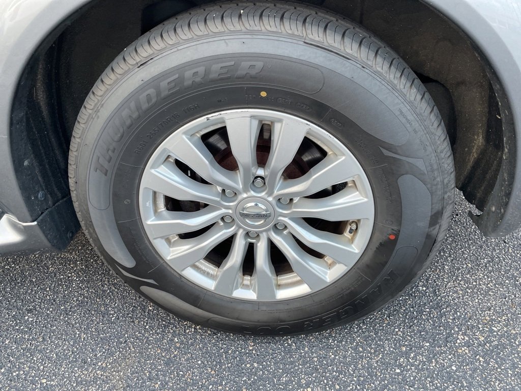 4WD, 13 Speakers, 3rd row seats: split-bench, 4-Wheel Disc Brakes, ABS brakes, Air Conditioning, Anti-whiplash front head restraints, Auto-leveling suspension, Automatic temperature control, Brake assist, CD player, Delay-off headlights, Driver door bin, Dual front impact airbags, Dual front side impact airbags, Electronic Stability Control, Emergency communication system: NissanConnect Services, Four wheel independent suspension, Front anti-roll bar, Front dual zone A/C, Fully automatic headlights, Heated door mirrors, Heated Front Bucket Seats, Leather Shift Knob, Low tire pressure warning, Navigation System, Occupant sensing airbag, Overhead airbag, Panic alarm, Passenger door bin, Power door mirrors, Power Liftgate, Power passenger seat, Premium Cloth Seat Trim, Radio: Bose AM/FM/SXM/CD/MP3/HD Radio, Rear air conditioning, Rear anti-roll bar, Rear window defroster, Reclining 3rd row seat, Remote keyless entry, Roof rack: rails only, Security system, Speed control, Speed-sensing steering, Spoiler, Steering wheel mounted audio controls, Traction control, Turn signal indicator mirrors.